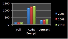 Currently over 91% of 1.4 million active UK Limited Companies file abbreviated accounts (aka audit exempt) as can be seen above, (data source is Company House)