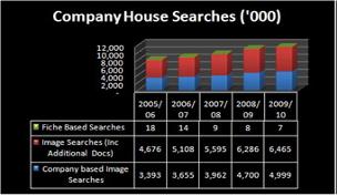 (See below data source Company House, in 2010/11 there were an estimated 15 million searches carried out on 1.4 million active limited companies. It is easy, not to mention scary, to calculate the average number of searches per company.)